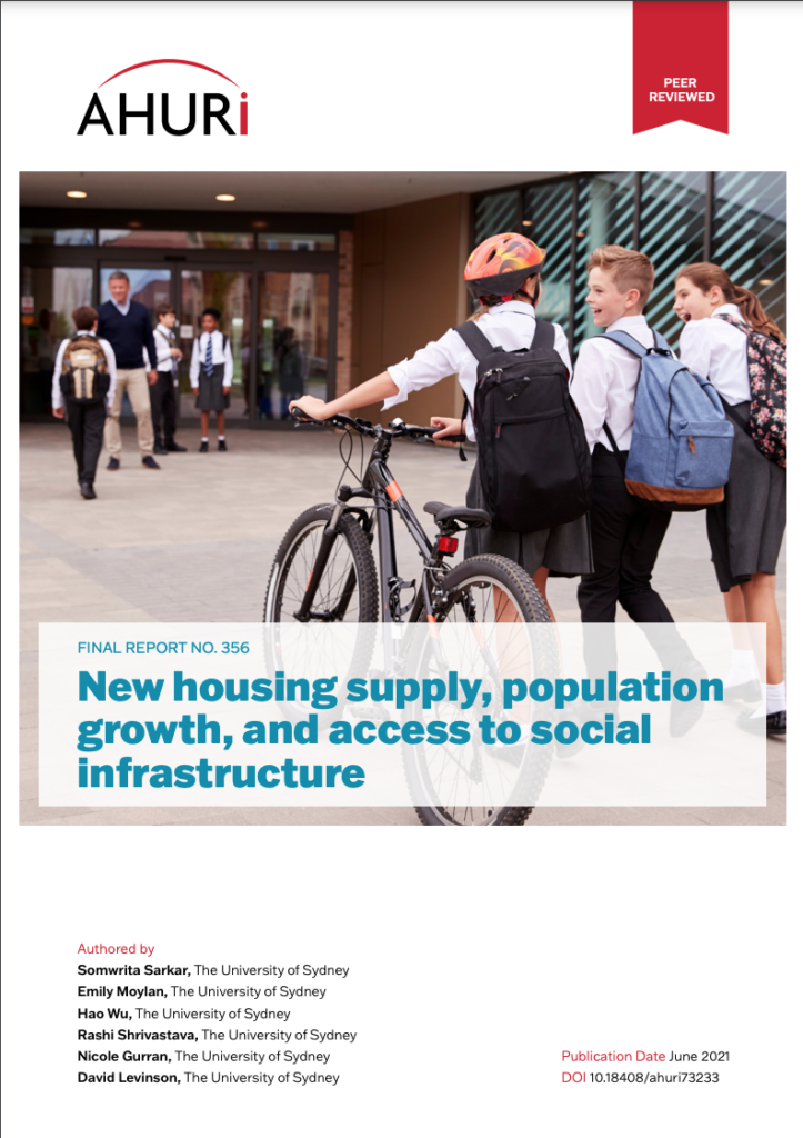 This project develops a monitoring framework to assist as a policy coordination tool which correlates the development of new residential supply and potential populations growth against delivery, spatial density/distributions of, and accessibility to, social infrastructure, based on case studies of greenfield development sites across Sydney, Brisbane and Perth.